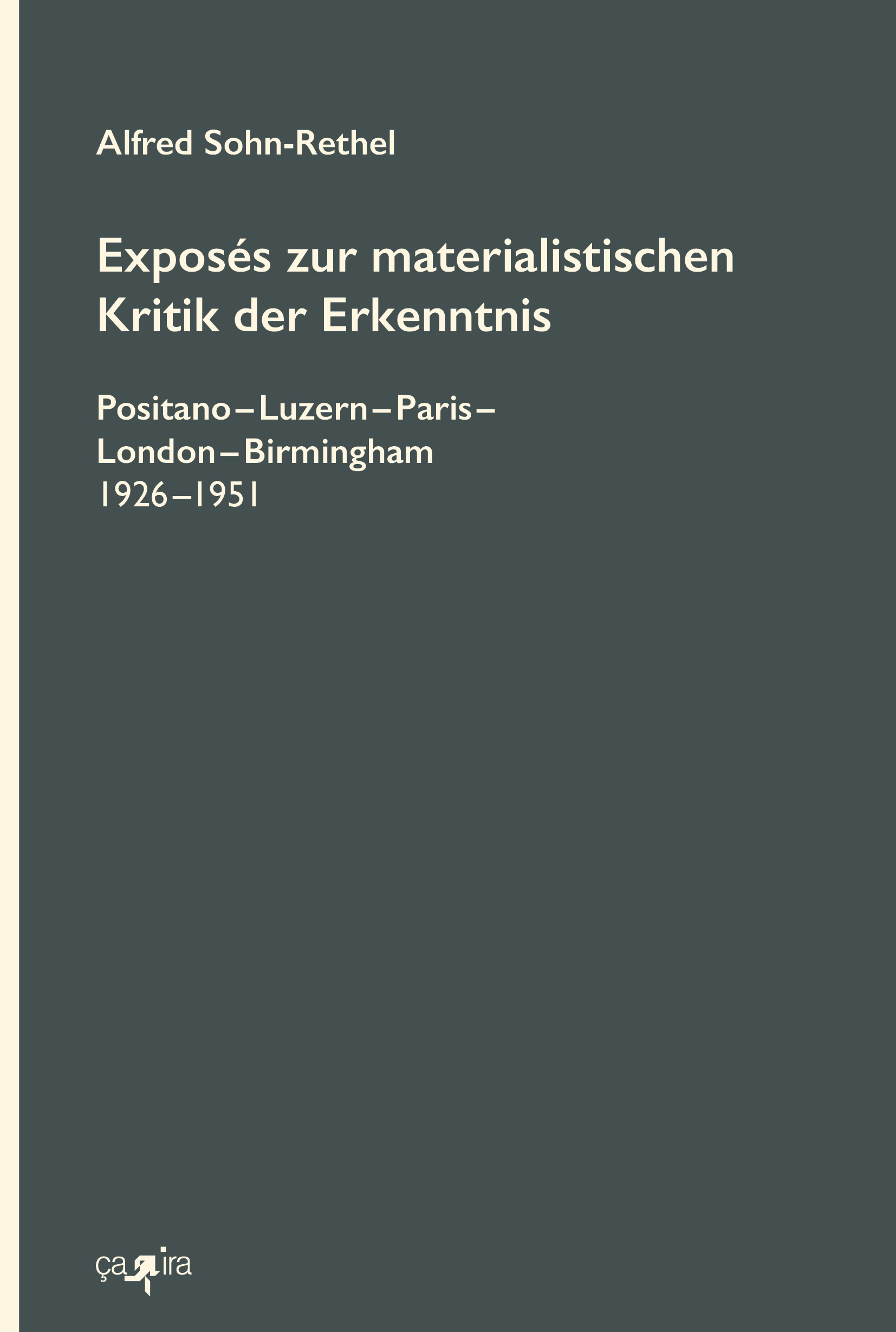 Sommer 2012, 300 Seiten, ISBN: 978-3-86259-109-1Herausgegeben von Carl Freytag und Oliver Schlaudt | Schriften I29,00 €Dieser Band versammelt erstmals Alfred Sohn-Rethels frühe theoretischen Schriften. Im Zentrum steht die Heidelberger Dissertation von 1928, vermehrt um bisher unveröffentlichte Dokumente, die ihre Entstehung im Zusammenhang seiner Arbeiten während der 1920er Jahre in Positano, Heidelberg und Davos nachzeichnen.
